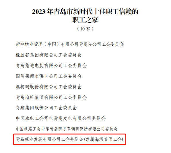 青島堿業(yè)工(gōng)會(huì)獲評“202≠"≤3年(nián)青島市(shì)新時(shí)代十佳職工(g ∑✔ōng)信賴的(de)職工(gōng)之家(jiā)”±λ>稱号