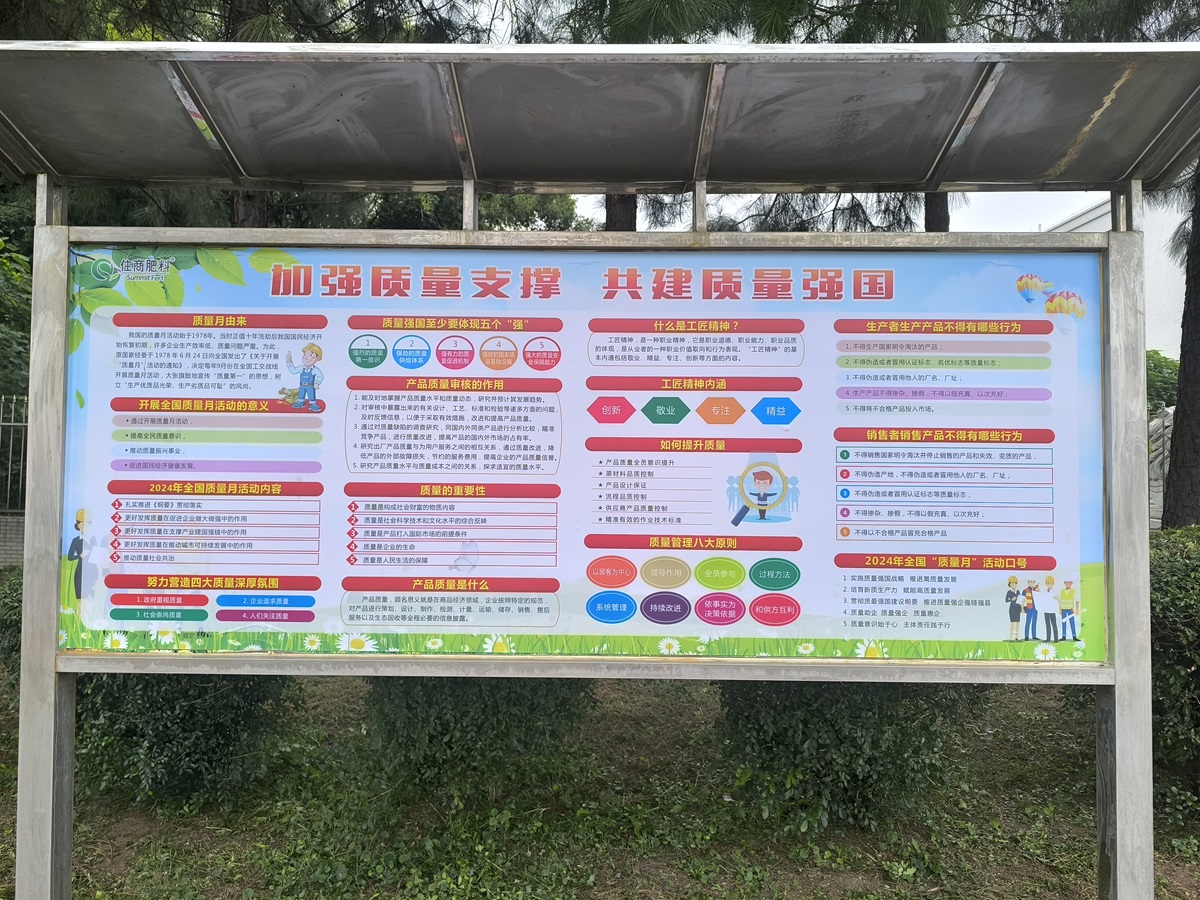近(jìn)期,青島堿業(yè)佛山(shān)住商肥↕¥$ 料公司從(cóng)深入踐行(xíng)質量理(lǐ)念、紮實開(kāi)展質量月(yuè←÷)主題活動、大(dà)力宣傳和(hé)弘揚質量文(wén)化(huà)三個(gè)方面,不§ (bù)斷加強質量文(wén)化(huà)建設,全面提升産品和(hé)服務質量,助力企業(↔©→≤yè)實現(xiàn)高(gāo)質量發展。