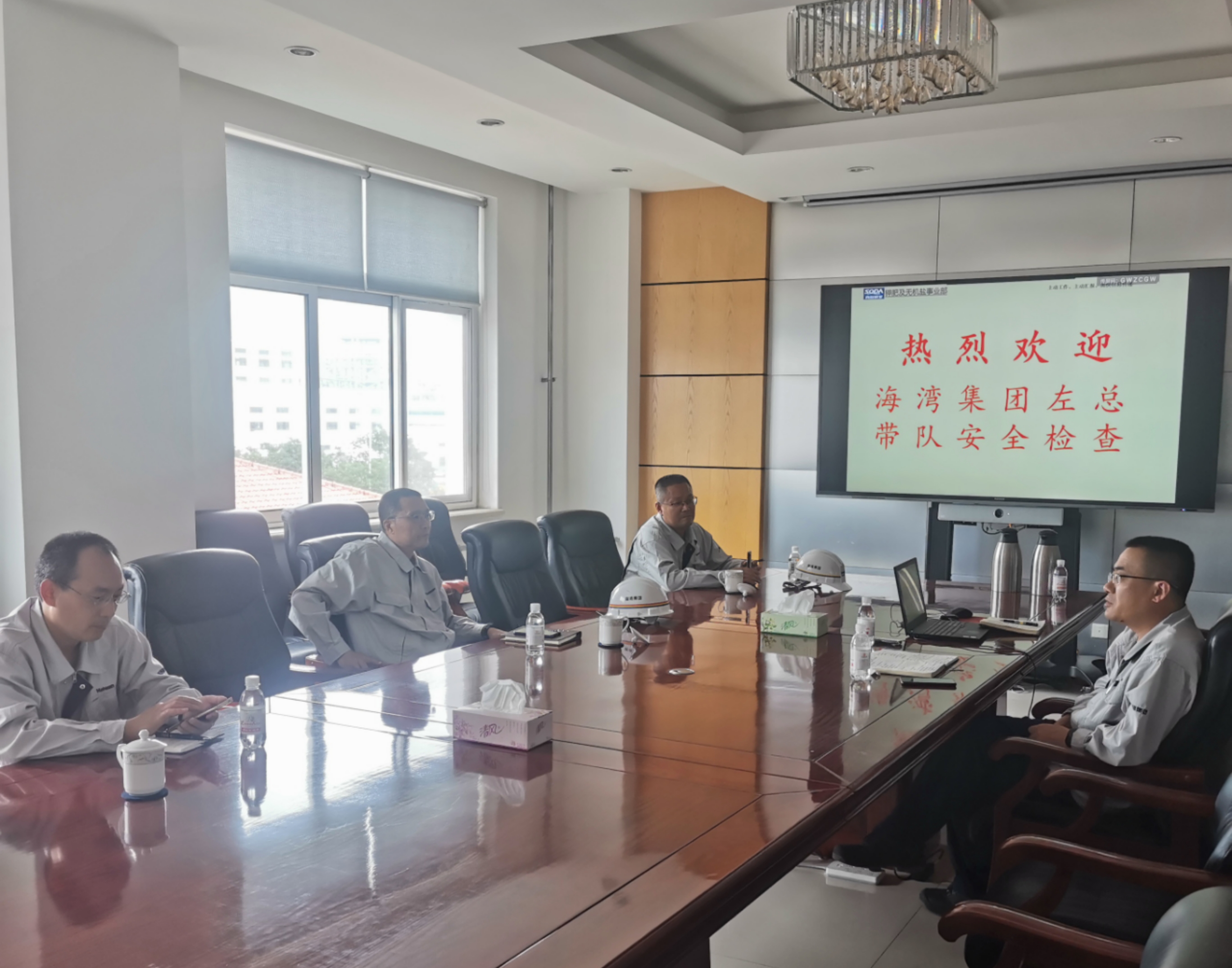 海(hǎi)灣集團副總經理(lǐ)、安全總監左志∑≠✘(zhì)遠(yuǎn)等領導到(dào)青島堿業(yè)檢查安全工(<βgōng)作(zuò)